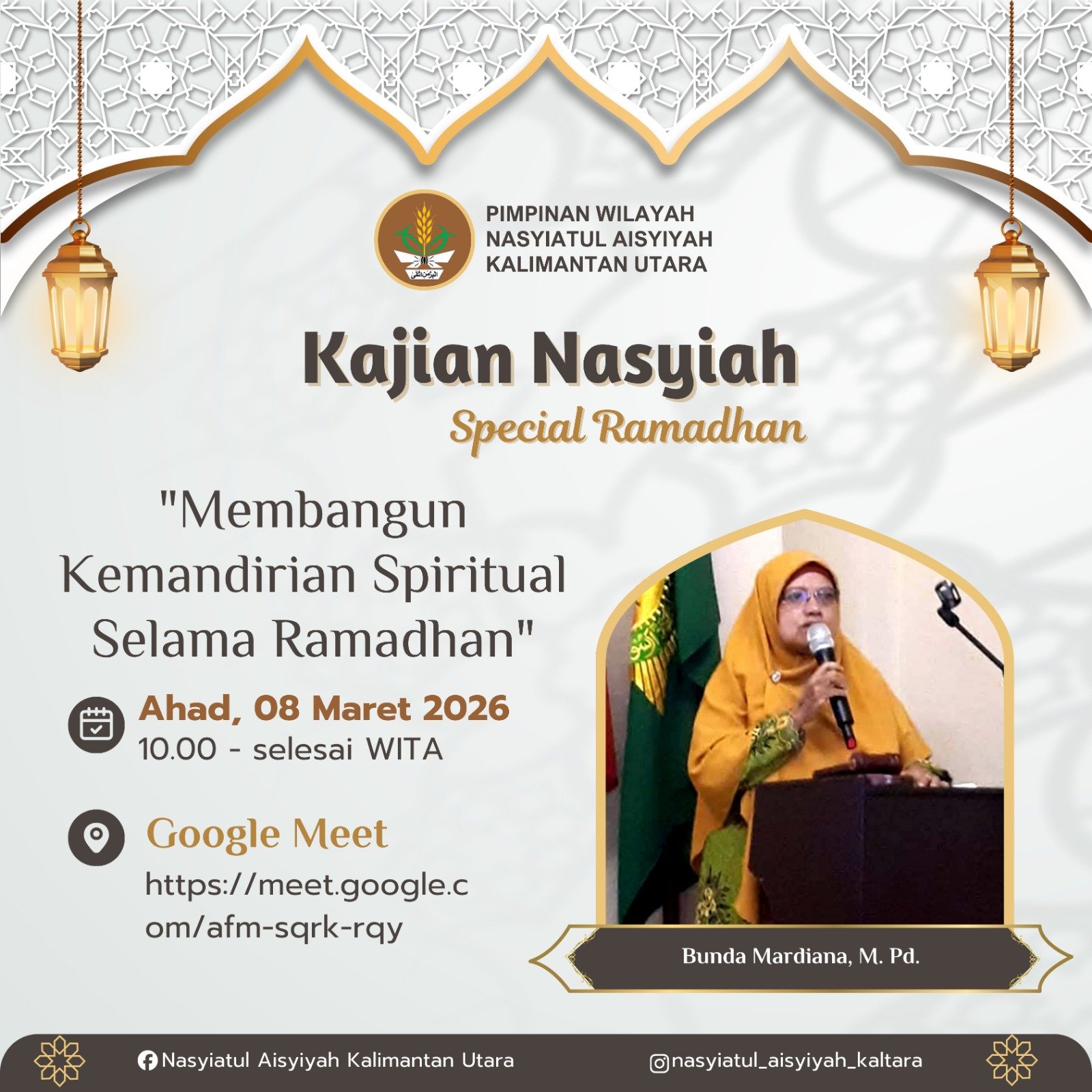 Pimpinan Wilayah Nasyiatul Aisyiyah (PWNA) Kalimantan Utara menggelar Kajian Nasyiah Special Ramadhan pada Ahad, 08 Maret 2026. Kegiatan yang diselenggarakan oleh PWNA Kalimantan Utara ini berlangsung secara daring melalui Google…